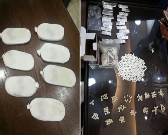 كما وتعاملت كوادر الادارة مع ١٠ قضايا اخرى في مناطق مختلفة من المملكة القت القبض خلالها على ١٤ شخصا من حائزي ومروجي المواد المخدرة ، من ابرزها قضيتين في العاصمة القي القبض في الاولى على ثلاثة اشخاص داخل مركبة وبحوزتهم ٧ كفوف من مادة الحشيش المخدرة ، في حين القي القبض خلال الثانية على احد المروجين بعد مداهمة منزله وبحوزته نص كف من مادة الحشيش المخدر وكميات اخرى من الحبوب والمواد المخدرة .