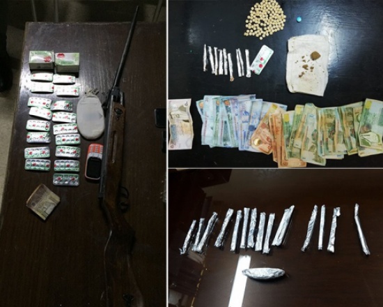 وفي اقليمي الشمال والجنوب تم التعامل مع اربع قضايا القي القبض خلالها على اربعة مروجين وبحوزتهم كميات من الحبوب والمواد المخدرة المجهزة والمعدة للبيع ، وضبط بحوزة احدهم سلاح ناري اوتوماتيكي .