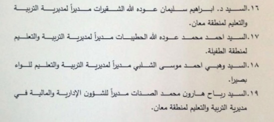 المدينة نيوز:- قرر وزير التربية والتعليم الدكتور عزمي محافظة اجراء عدد من التشكيلات الإدارية في الوزارة اعتبارا من اليوم الأحد .