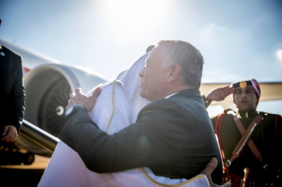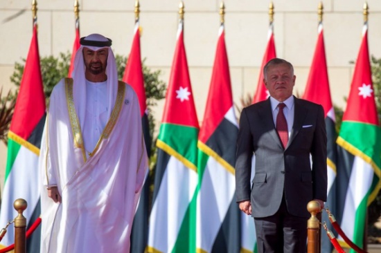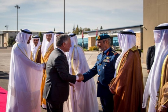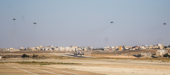 ولدى دخول الطائرة التي تقل سمو الشيخ محمد بن زايد آل نهيان إلى الأجواء الأردنية، رافقتها طائرات مقاتلة تابعة لسلاح الجو الملكي الأردني.
