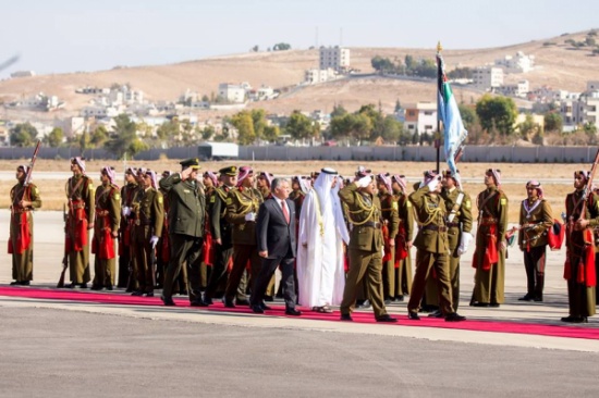 وجرت لضيف الأردن الكبير لدى وصوله مطار ماركا العسكري، مراسم استقبال رسمية، حيث أطلقت المدفعية إحدى وعشرين طلقة تحيّة للضيف، فيما عزفت الموسيقى السلامين الوطني الإماراتي والملكي الأردني.