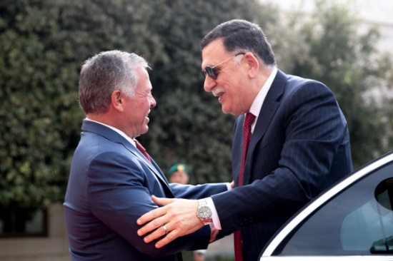 المدينة نيوز:- استقبل جلالة الملك عبدالله الثاني يستقبل رئيس المجلس الرئاسي لحكومة الوفاق الوطني الليبي فائز السراج لدى وصوله إلى قصر الحسينية.