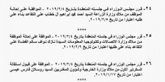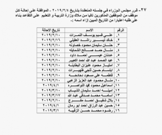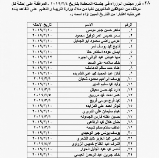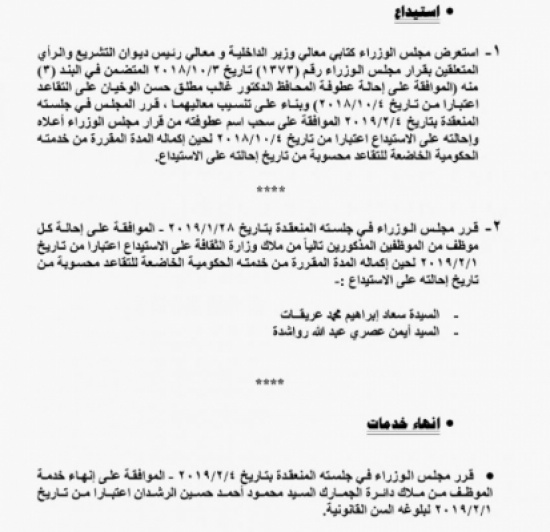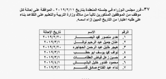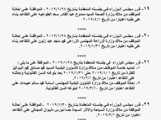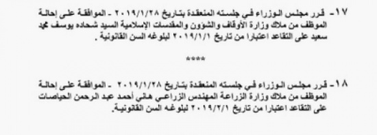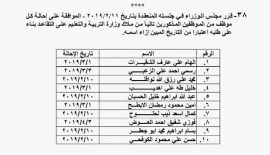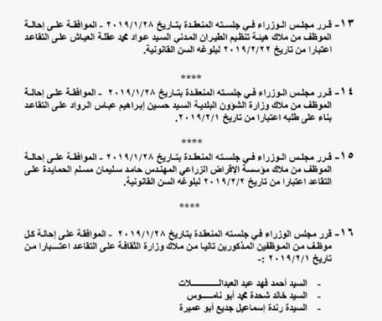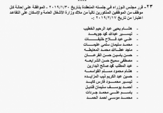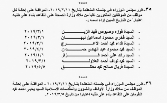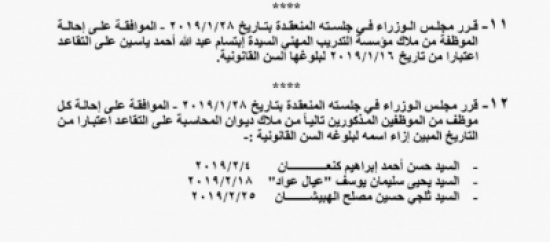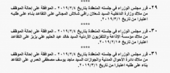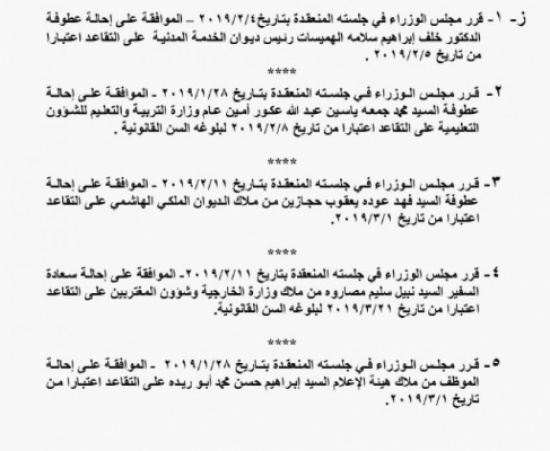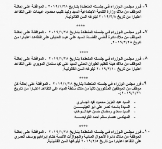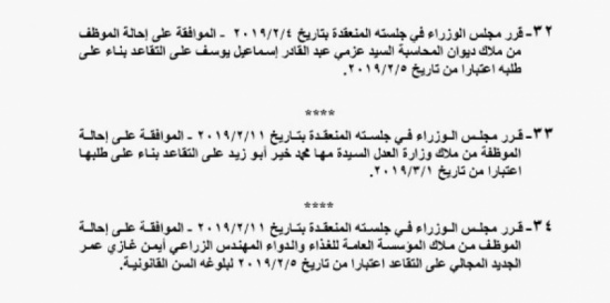 المدية نيوز :- قرر مجلس الوزراء احالة عدد من موظفي الحكومة الى التقاعد، وانهاء خدمات اخرين.