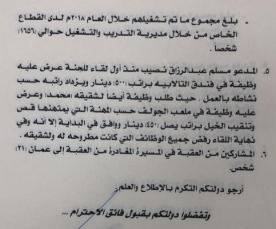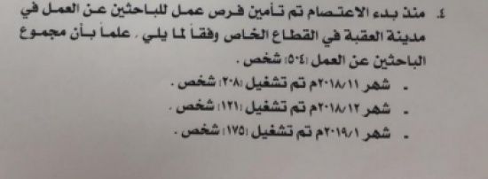 ويذكر الكتابان فرص العمل التي توفرت للشباب والرواتب الممنوحة لهم .