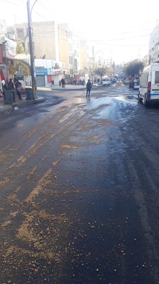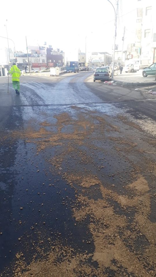 وقد قامت مجموعات ادارة السير بتحويل حركة السير عن الموقع، حفاظا على سلامة مستخدمي الطريق ولغاية الانتهاء من معالجة المادة المنسكبة.