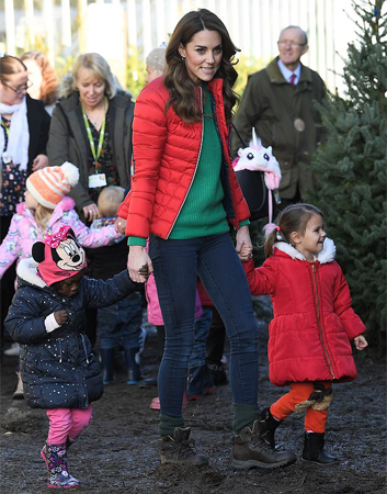 في إطلالتها الأخيرة خلال شرائها شجرة الكريسماس مع أطفال المؤسسات الخيرية التي ترعاها، نسّقت كيت إطلالتها الكاجوال الأنيقة بما يناسب روح الأعياد، فارتدت بنطلون من الدنيم الأزرق، مع كنزة خضراء صوفية زاهية، وجاكيت حمراء منتفخة. المزج بين الألوان أضفى البهجة على الإطلالة، وكلها ألوان ترتبط بالكريسماس والأعياد مباشرة، ما جعلها تبدو متوهجة وجذابة ومثيرة للفرح.
