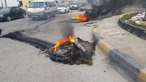 وقال شهود عيان : ان اشخاص اقدموا على حرق الاطارات واغلاق شارعا رئيسيا في الحي الشمالي على خلفية انتحار شاب ، بعد مصادرة البلدية لبسطة كان يعمل عليها .