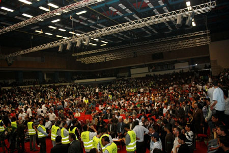 المدينة نيوز - خاص: نظمت النقابات المهنية - شريان الحياة الأردنية مهرجان "أسطول الحرية" مساء امس السبت في جامعة عمان الأهلية على خشبة مسرح الأرينا بمشاركة فنانين قدموا من سهول وضفاف وجنوب وشمال فلسطين وقلب العاصمة بيروت ومن بلد الجمال والطبيعة الخلابة والتاريخ والحضارة العريقة تركيا، الى نبض الجسم العربي "عمان" ليشاركوا اخوتهم في دعم قضيتهم العربية التي يؤمنون بعدالتها وهم: الفنان أحمد قعبور ومتعب السقار وعبد الفتاح عوينات والفنان التركي ميكال وخالد الشريف وخيري حاتم وفرقة الوعد وفرقة الإعتصام وفرقة اليرموك وفرقة الروابي، وحضر الحفل عدد كبير من النقابيين والمعنيين وجمهور تجاوز الثمانية آلاف شخص.