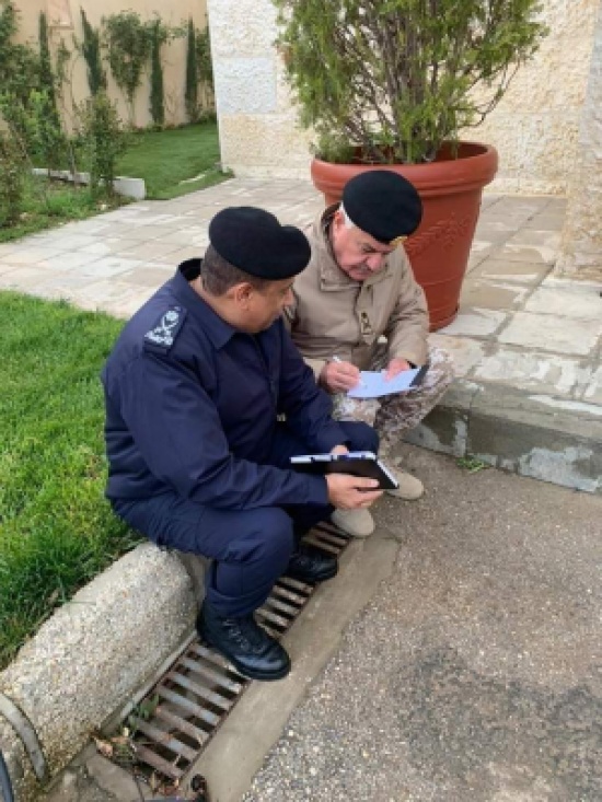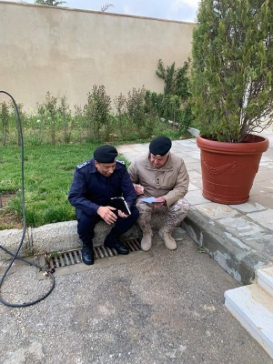 المدينة نيوز - غدير شهاب - اللواءان يوسف الحنيطي وحسين الحواتمة يجلسان على الرصيف ويتناقشان بأمر ما .. الأقرب للظن انه الكورونا التي تمكن هذان البطلان من حصارها في آخر معاقلها ان شاء الله مع تلك الثلة من الجنود الظاهرين والمخفيين .