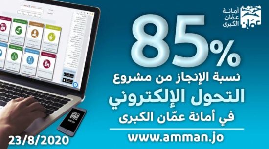 المدينة نيوز:- أعلن أمين عمان الدكتور يوسف الشواربة اليوم الأحد عن إطلاق 7 خدمات الكترونية جديدة ، لترتفع نسبة الإنجاز في هذا المشروع الى 85 بالمئة ، حيث ستشهد نهاية العام الجاري 2020 نقطة تحول هامة في كيفية تقديم خدمات أمانة عمان الكترونيا وذلك بالتحول الكامل للخدمات حسب الخطة الموضوعة لذلك.
