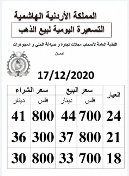 وأشارت النشرة الى ان أسعار بيع الذهب في الأسواق المحلية اليوم الخميس بلغت: