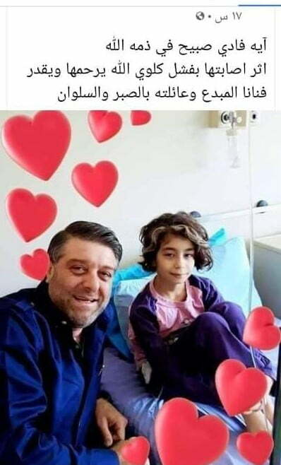 وكانت الشائعة قد ذكرت أن “آية هي ابنة الفنان فادي صبيح قد تعرضت للإصابة بفشل كلوي ما أدى لوفاتها متمنين لصبيح وعائلته الصبر والسلوان ولها الرحمة والمغفرة”.