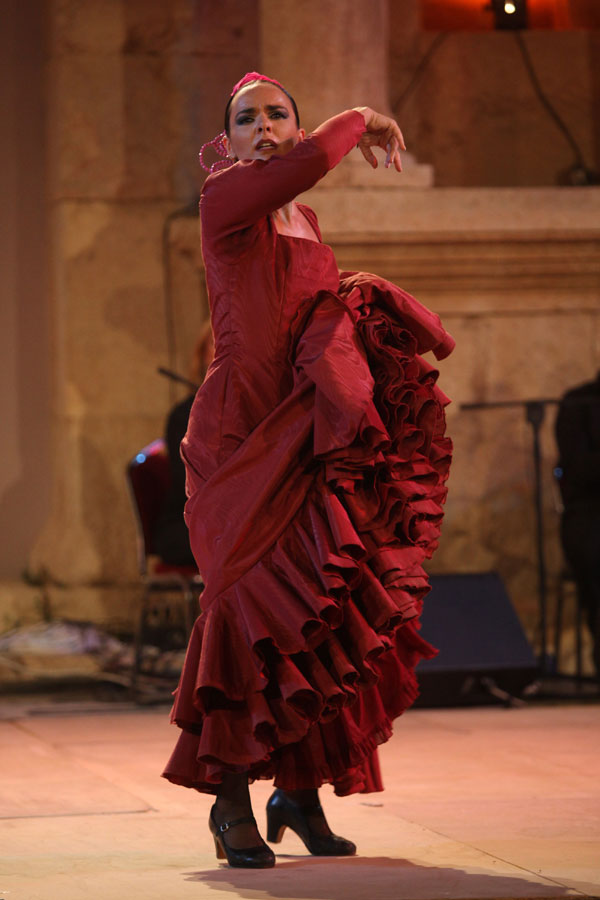 أطلت الفرقة على الجمهور القليل والمتتبع لهذا اللون من الفن بكامل رونقها، عازفا جيتار وعازف على الكاخون ومغن ومايسترو الفرقة و6 راقصين و7 راقصات، ولونوا فضاء المسرح الشمالي وحجارته العتيقة بلماستهم الدقيقة، وضربات أرجلهم التي جاءت بتناسق بديع.