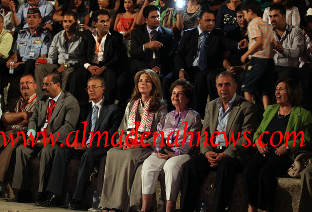 المدينة نيوز - خاص - محمود الخطيب: حضرت الملكة نور فعاليات مهرجان جرش للثقافة والفنون، ليلة الخميس - الجمعة ، والتي تخللها حفل الفنانة نجوى كرم، ورافقتها في زيارتها العين ليلى شرف ووزير الثقافة جريس سماوي ورئيس هيئة مديري مهرجان جرش اكرم مصاروة ومدير عام المركز الثقافي الملكي محمد ابو سماقة المدير الاداري والمالي للمهرجان.