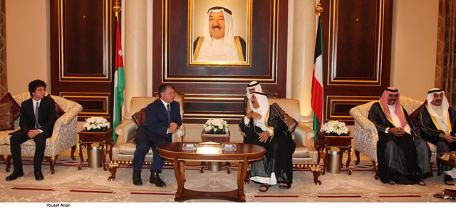 واعرب جلالة الملك عبدالله الثاني عن تقديره لدولة الكويت بقيادة سمو الشيخ صباح الاحمد الجابر الصباح على مواقفها الداعمة للاردن لمواجهة التحديات الاقتصادية التي يمر بها .